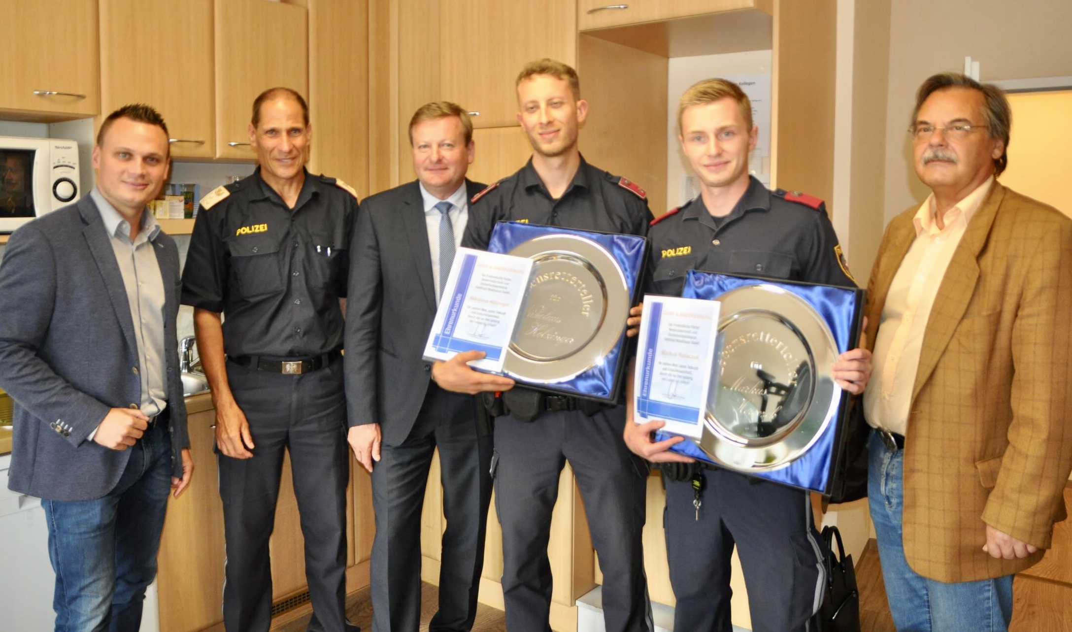 „Nur der raschen Reaktion der beiden Beamten ist es zu verdanken, dass nichts Schlimmeres passiert ist“, sagt Waldhäusl. „Es war mir daher eine ganz besondere Ehre, heute den Lebensretter-Teller übergeben zu dürfen – für mich sind sie wahre Helden!“